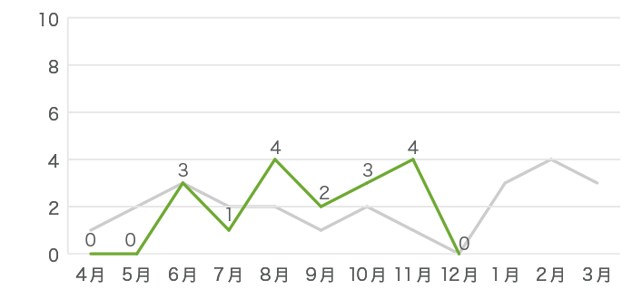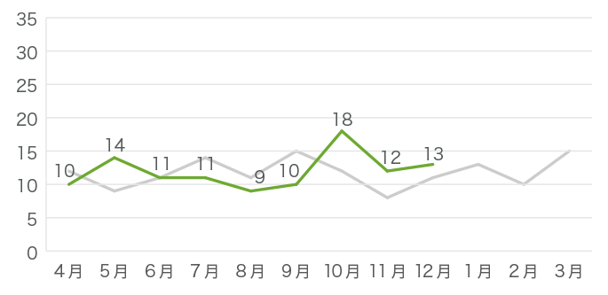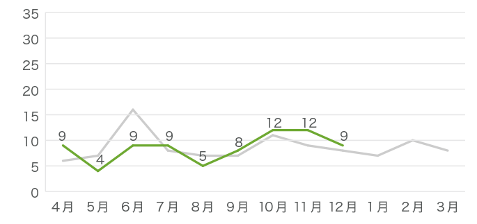 昨年のデータはグレーの線で示しています。